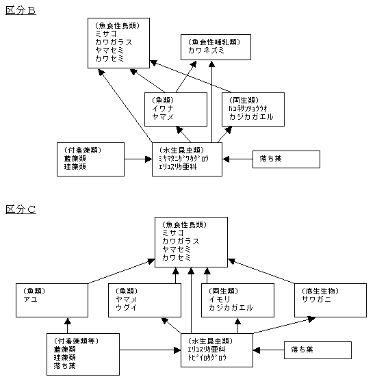 ヤマセミは、事業実施区域である河川周辺の土質の崖で営巣が確認されており、また、周辺河川に生息するイワナ、カエル等を餌として利用している。よって、対象地域の栄養段階の上位に位置する種であり、事業実施により影響を受けるおそれある生物であるといえる。 |