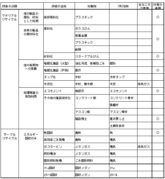 廃棄物等の環境保全措置として検討できる技術等について網羅的に把握する。整理内容は表3-12に示す方向性に基づいた技術的内容が考えられる。